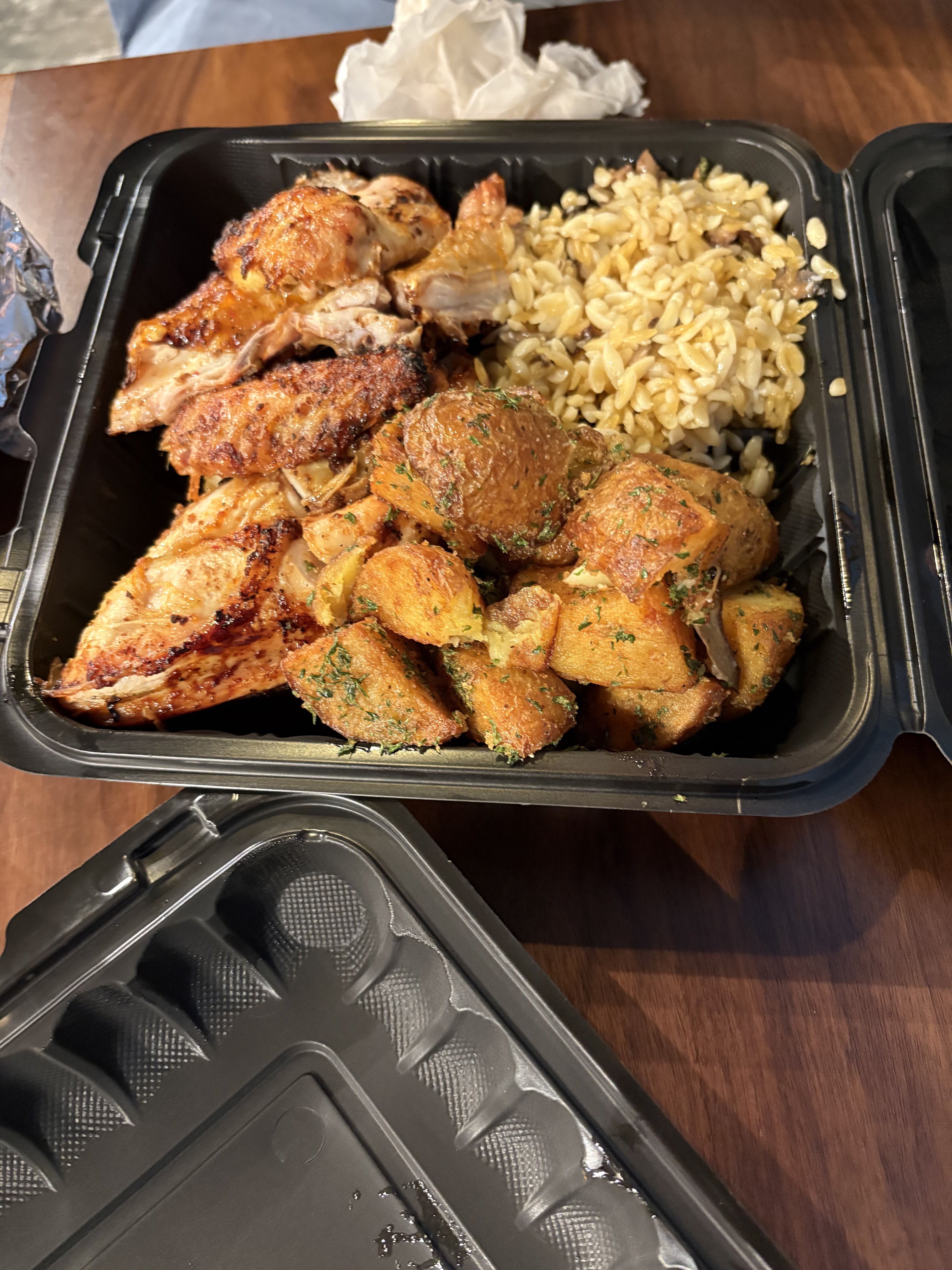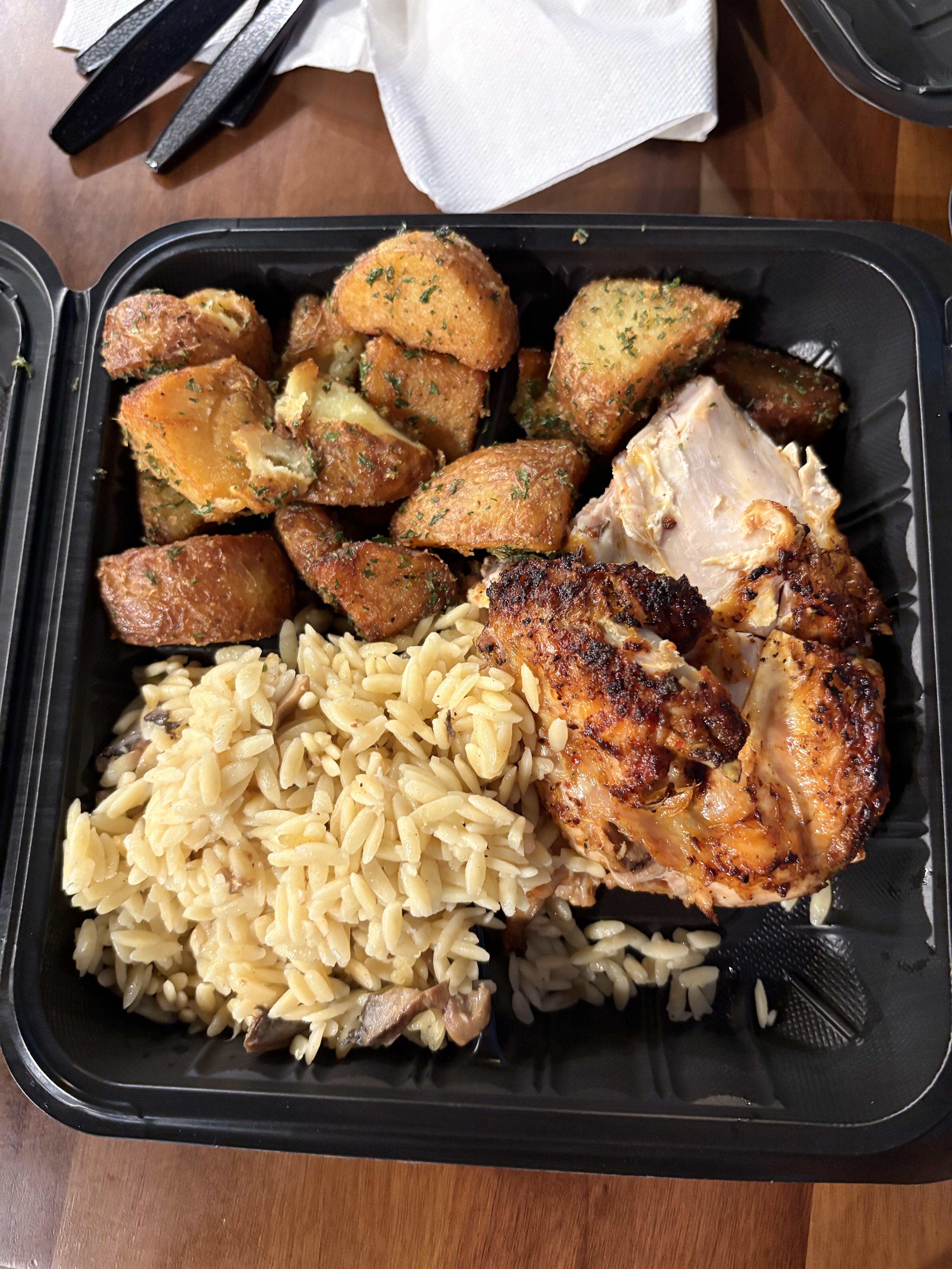 The real standout of our meal was the garlic potatoes side dish. Crispy, well-seasoned, and bursting with flavor, these potatoes were everything the chicken should have been. They alone might be worth a visit—though at current prices, that’s a tough sell.